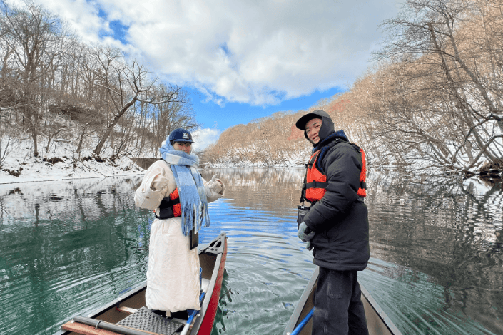 在清澈見底的千歲川上體驗冬季漂流之旅,沿途尋找野生動物的蹤跡,全程約5公里。