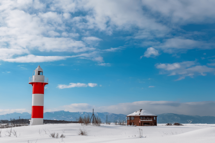 擁有超過130年歷史、為日本主要磚瓦生產地之一的工場中,您可欣賞雪景與紅磚交織出的獨特對比之美。