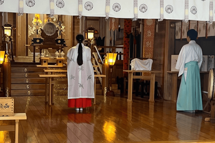 在擁有 120 年歷史的當別神社,體驗巫女服飾體驗。